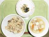 今日の献立は、牛乳、鶏肉とごぼうのごはん、豆腐汁、和風サラダです。 今日使用の...