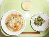 今日の献立は、牛乳、ちゃんこうどん、野菜のごま和え、月見だんごです。 今日は十五...