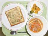今日の献立は、牛乳、ツナトースト、ミネストローネ、パンプキンサラダです。 今日...