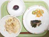 今日の献立は、牛乳、秋の香りごはん、さんまの松前煮、野菜の甘酢かけ、プルーンです...