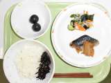今日の献立は、牛乳、ごはん、ひじきのふりかけ、さばのみそ煮、わかめとしらすの酢の...