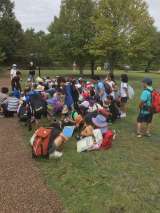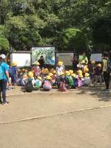 アスレチックをいっぱい楽しみました!集合しています。これから、広場へ移動してお弁...