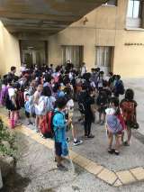 とてもいい天気のもと、今日は一年生の遠足です。元気いっぱいにいってきます!