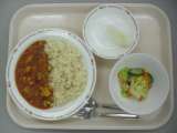 【献立】 チリビーンズライス 牛乳 たまねぎドレッシン...