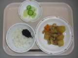 【献立】 麦ごはん 牛乳 のりの佃煮 肉じ...