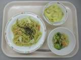 【献立】 和風スパゲッティ 和風サラダ りんごいり蒸し...
