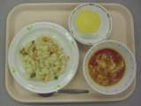 【献立】 えびチャーハン 牛乳 トマトとたまごのスープ...