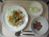 【献立】 中華丼 牛乳 大豆とじゃこの甘辛揚げ ...