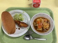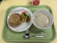 今日の献立セサミビスキュイパン じゃがいものポタージュ ピクルス 牛乳ピクルスには、にんじん、セロリ、大根、きゅうりが入っています。ビタミンたっぷりのピクルスです。