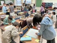 昨日とはうってかわり風が冷たいですが、子どもたちは元気に朝から体を動かしています。 1年生が国語の学習で、自分が作ったお話を友だちと読み合い、ふせんに工夫したところやいいところを書いてもらっていまし...
