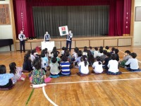 世田谷警察署の方々が来てくださり、1年生の交通安全教室が行われました。横断歩道...