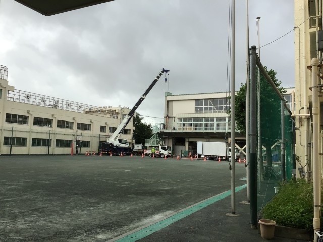 今日で中丸ホール天井の遮熱シート工事が終わります。明日からは中丸ホールエアコン増設工事に向けた準備が始まります。1学期の終業式は中丸ホールで行いますが、その後はエアコン増設工事が入るので、中丸ホールは使用できない期間がでてきます。2学期は涼しい中丸ホールでスタートできるのが楽しみです。