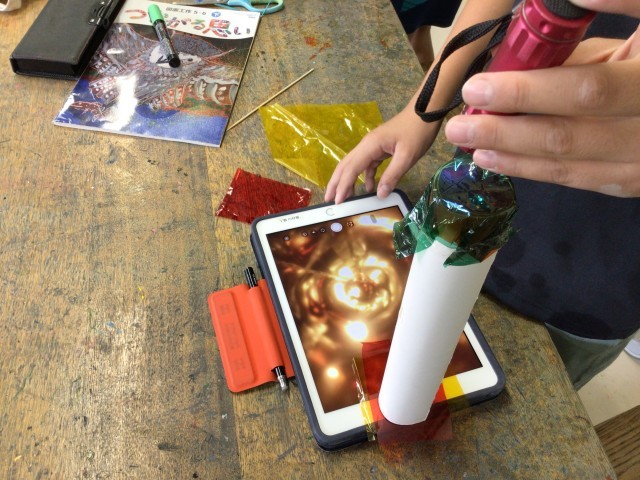 専科の授業はほとんどのクラスで最後になります。6年生は、図工の学習で釉薬やガラスを使ってすてきな焼き物を作っていました。中丸小には陶芸窯があるので焼き物の授業が行えます。どこの学校でもできることではないのでとても誇らしいです。焼き物が早く終わった子は、光る万華鏡作りにも挑戦していました。