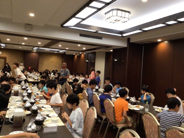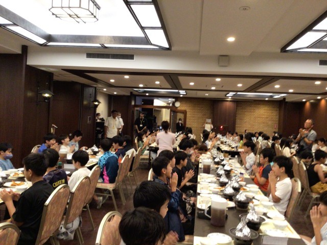 お風呂に入ってさっぱりした子どもたちです。おいしい夕食をいただきます。