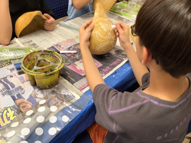 日光の伝統工芸であるふくべ細工を作りました。ふくべは夕顔の実を乾燥させたものです。
