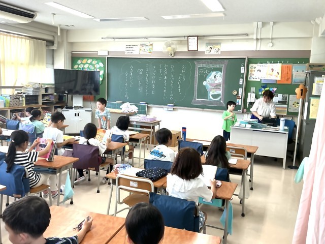 事故や怪我にあったという報告もなくて本当にうれしいです。各クラスで夏休みの思い出やがんばりを先生や友だちに楽しそうに伝え合っていました。