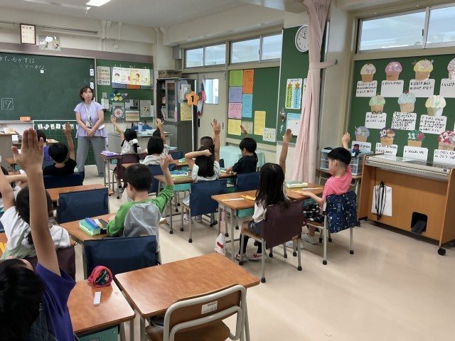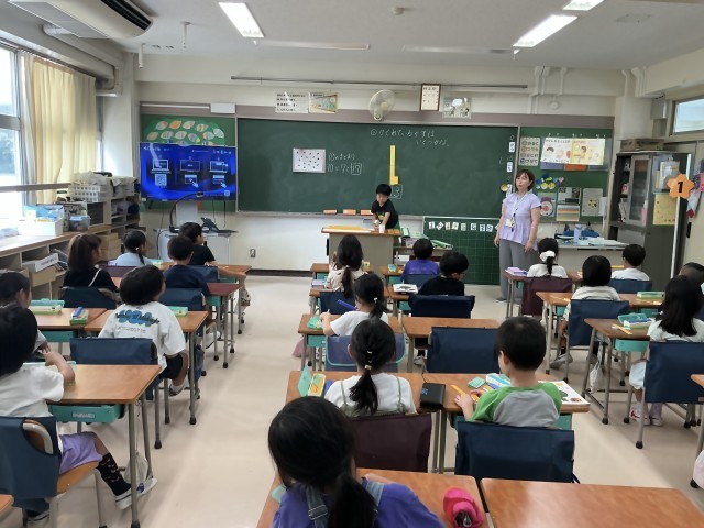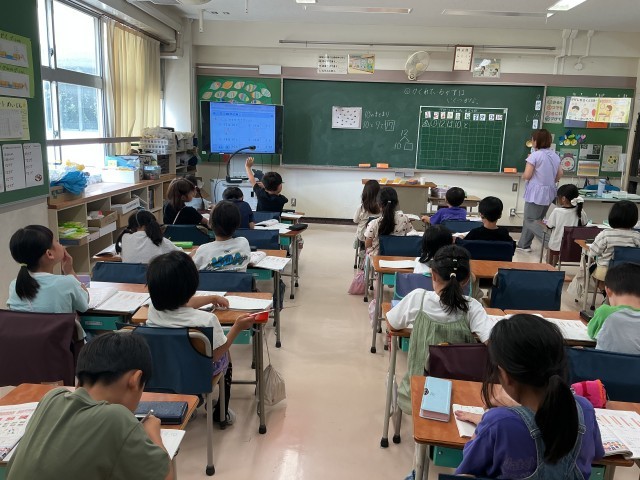 1年生教室では、算数の学習に取り組んでいました。友だちや先生のお話をよく聞いて活動に取り組めています。10のまとまりといくつというクイズに取り組みながら楽しく20までの数の構成を理解することができました。