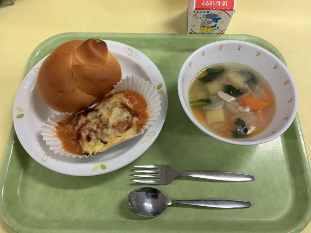 ミルクパン 魚のピザ風 ABCスープ 牛乳