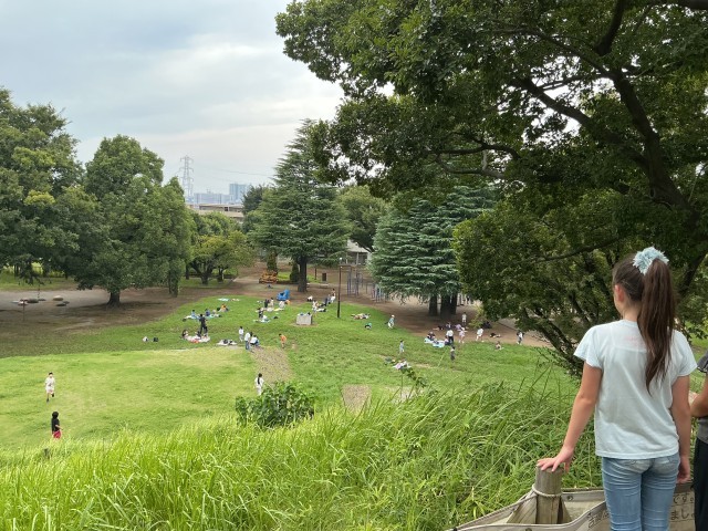 その後、バスで玉川野毛町公園でお弁当を食べた後は、公園内の古墳に上がって景色を楽しみました。「この下に王様が眠っているんだ」と呟く子もいました。お弁当の準備ありがとうございました。