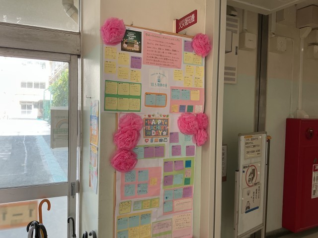 昨日10月5日は、「教師の日」でした。中丸小の子どもたちを支えるたくさんの教員をはじめとした大人に、PTAさんからあたたかいメッセージボードをいただきました。ありがとうございます。令和7年度の後半もこれでがんばれます。東昇降口に飾られていますので、ご覧ください。