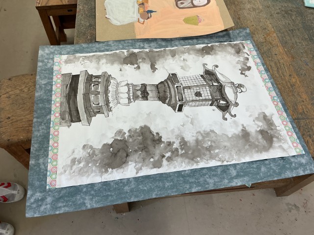 6年生は、展覧会に披露する平面作品、立体作品を選択していました。展示スペースの関係で平面作品は2つのうち1つに絞らなくてはなりません。どちらも展示させてあげたいのでとても悩みます。