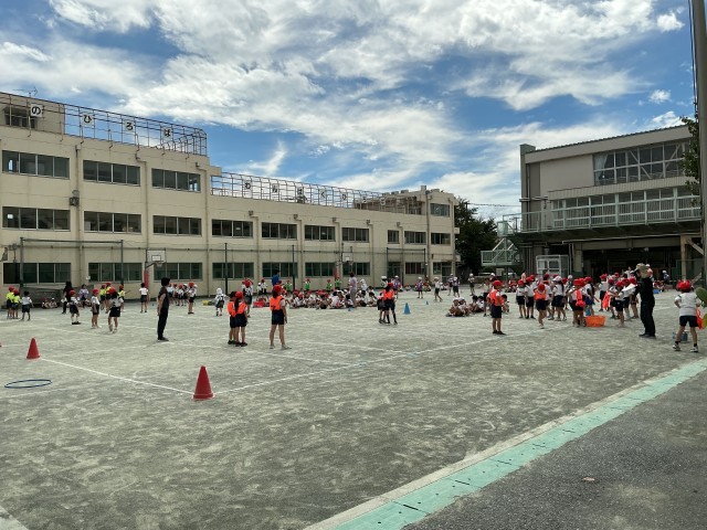 1、2年生が秋の中丸スポーツ大会に向け合同練習していました。2年生が審判で活躍する場面が見られました。