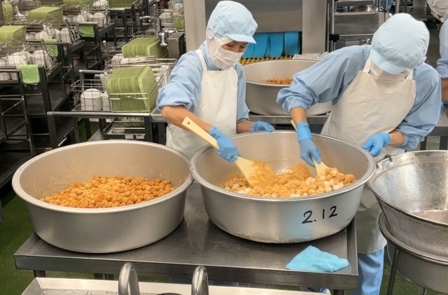 写真は「鶏肉と里芋のうま煮」と「お月見だんご」です。