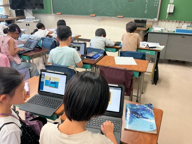 2学期からタブレットが新しくなり、子どもたちは新しいタイピングのアプリを使っています。3年生の子が「ぼくにとっては、こっちが使いやすいです。」と教えてくれました。自分の学びに何が必要かを考える力、選び取る力も向上している中丸の子どもです。