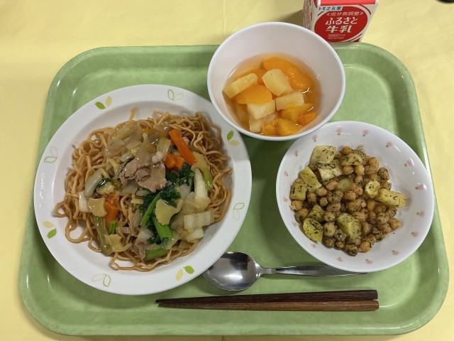 五目あんかけそば のりじゃが豆 フルーツポンチ 牛乳