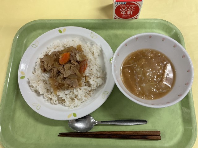 おろし豚丼 キャベツのみそ汁 牛乳