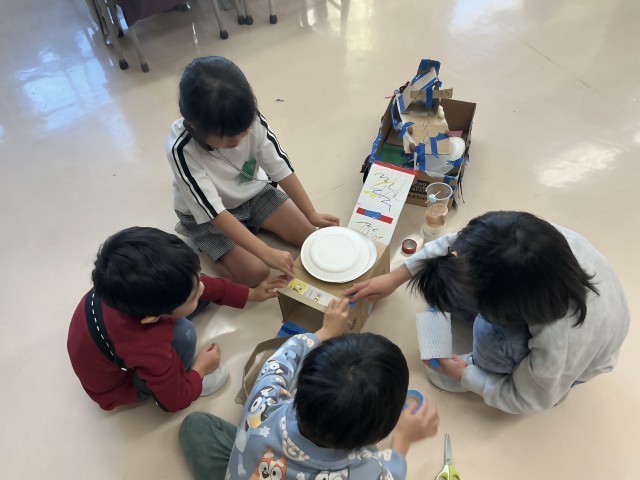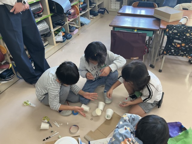 1年生は、自分の創りたい秋のおもちゃを保育園児にも楽しませようと考えバージョンアップに取り組んでいました。他者意識、目的意識を1年生なりにもって意欲的に学習に取り組んでいました。