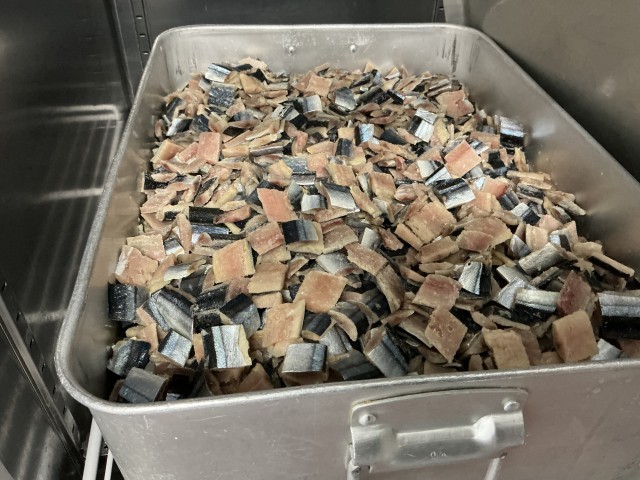 さんまごはんは、さんまを油で揚げて、甘辛く味付けして、ご飯に混ぜて作りました。