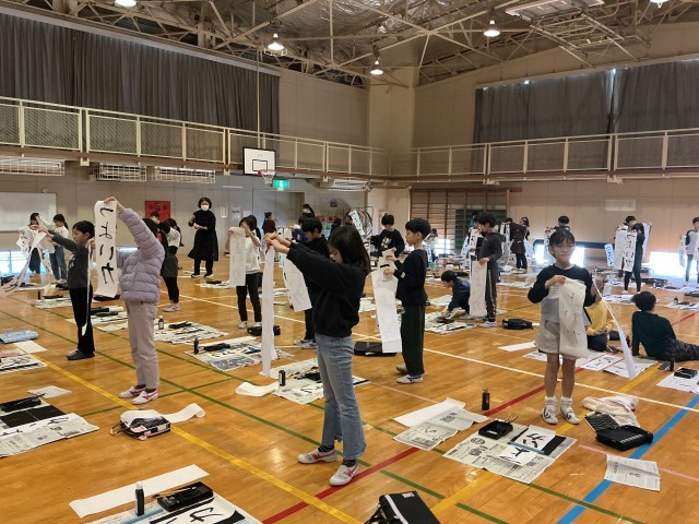世田谷書道教室の三橋先生をはじめ、9名の講師の先生方をお迎えし、書き初めの練習会を行いました。三年生は課題である「つよい力」という言葉の意味を考えながら、ゆっくり丁寧に書くことを大切に、一文字一文字に気持ちを込めて取り組みました。筆を立てて書くことを意識する「ひも天井」の合言葉を意識しながら、これからも練習を重ねていきます。