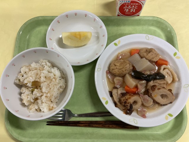 今日は「せたがやそだち給食」です。せたがやそだちの大蔵大根を使っておでんを作りました。