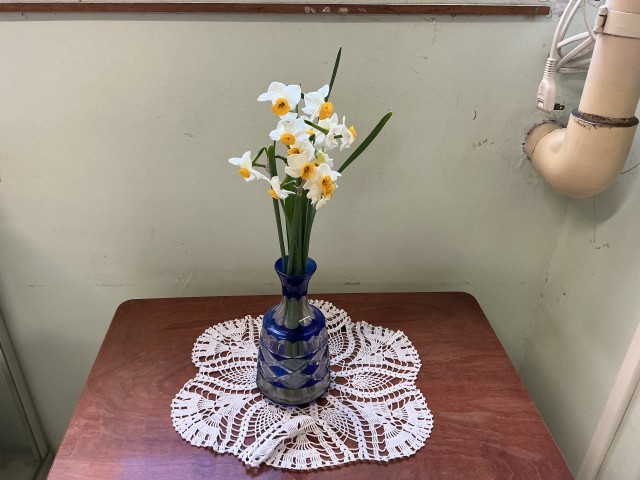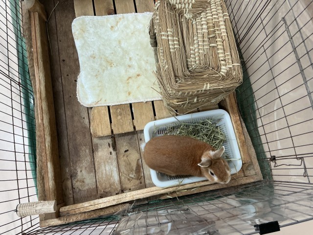 廊下が寒いので、ウサギのムギは暖かいところにいます。ムギに会いたかった子にはごめんなさい。