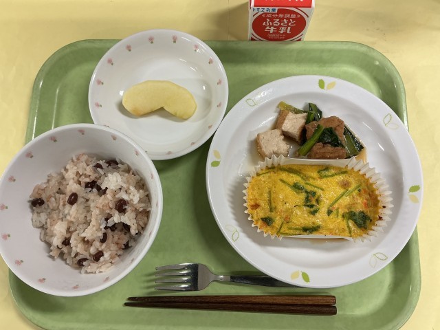 小豆ごはん 卵焼き 生揚げの煮浸し りんご 牛乳