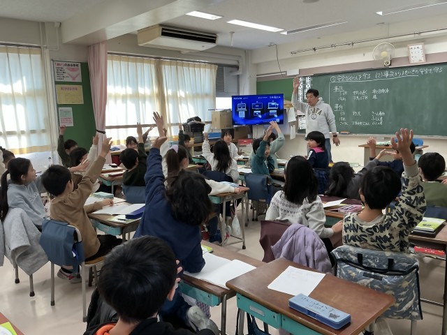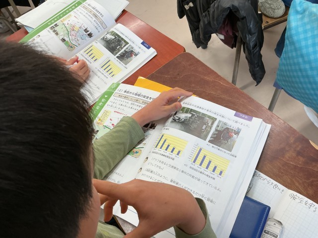 3年生の社会科の学習では、交通事故や事件の数が減ってきている事実に驚くとともに私たちの生活の安全をつくる工夫を見つけようとしていました。近隣の公園での不審者や最近の事件の報道を見聞きすると体感的には、事件が減っているとは思えませんが、データからはこの10年間で交通事故も事件も3分の1程度に減っています。「警察の人が増えたから」「車が進化した」などおもしろい予想が飛び出します。これから確かめていきます。
