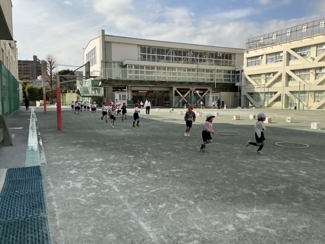 1年生は3分間走に取り組んでいます。自分のペースをつかめてきたようで最後まで無理なく走り切っています。