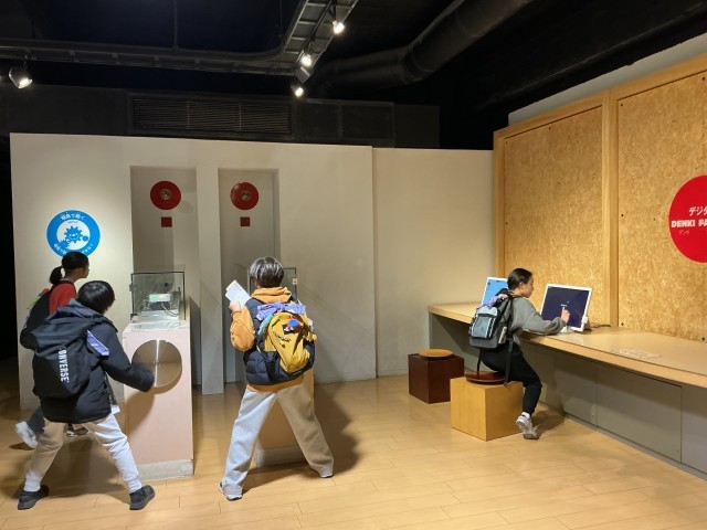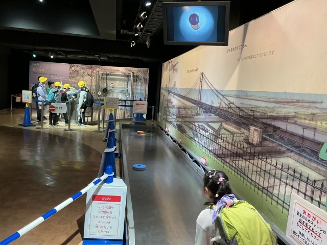 科学技術館に移動し、お弁当を食べてから班ごとでそれぞれの階で体験します。中丸小以外にも6校ぐらいの小中学校が来館していて賑わっていました。期間限定のイベントも行われており、小中学生だけでなく、一般の方や観光客の方も多かったです。中丸の子どもたちは班のメンバーと相談して巨大シャボン玉やカーリングなどを楽しんでいました。お弁当など朝早くからのご準備ありがとうございました。
