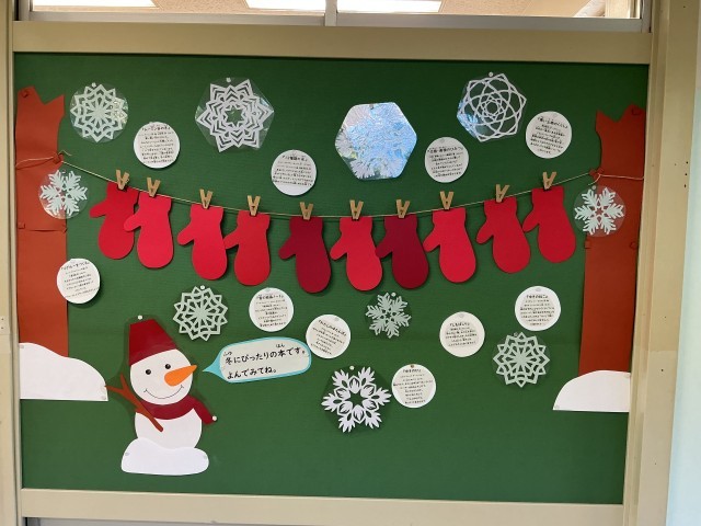 寒い冬を楽しもうと図書室では雪や氷にまつわる本の特集が組まれています。