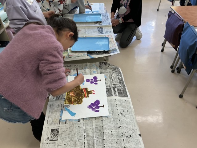 1年生は絵の具やクレパスを使って「できたらいいな」と思えることを想像して描いていました。虹の上を歩いたり、雲の上に乗ってみたり。楽しそうな夢の世界が広がります。
