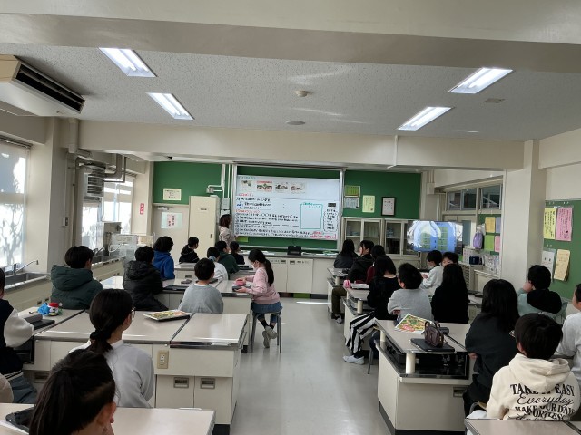 5年生は、家庭科室で調理実習の計画を立てていました。ほうれん草とじゃがいもをゆでるのですが、ゆで方の違いなどを理科の実験のように比較しながら行います。実際に調理するのは来週ですが、班の友だちと安全に調理に取り組めるよう役割分担や手順を話し合って決めていました。