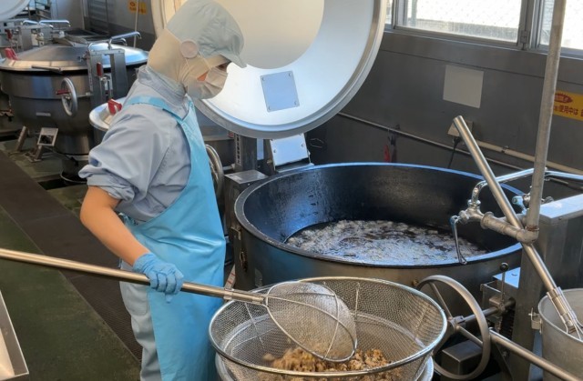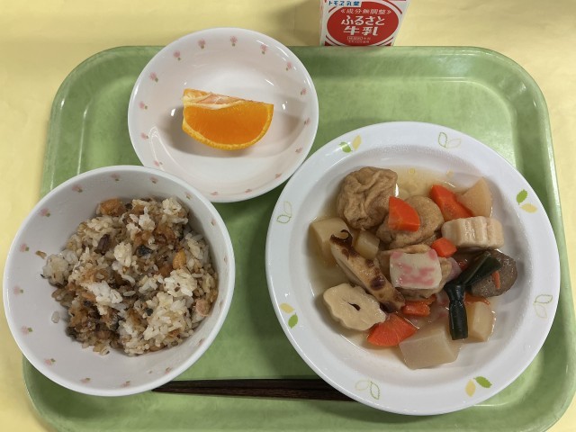 給食では大豆といわしを使った混ぜご飯を作りました。