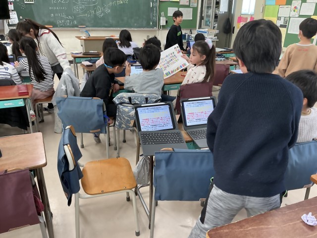 3年生は、これまでの総合の学習で見つけてきた地域のお宝である下馬図書館、世田谷観音さん、龍雲寺さんについて発表します。発表準備に余念のない子どもたちです。