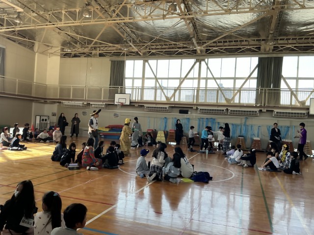 3年生は、中丸ホールで国際理解教育の出前授業を行っていました。民族衣装を着た先生に子どもたちも大喜び。グループに分かれていろいろな国を学びます。学習のまとめでそれぞれの国の言葉で挨拶や自己紹介をしました。流暢に挨拶できる子どもたちに感心しました。