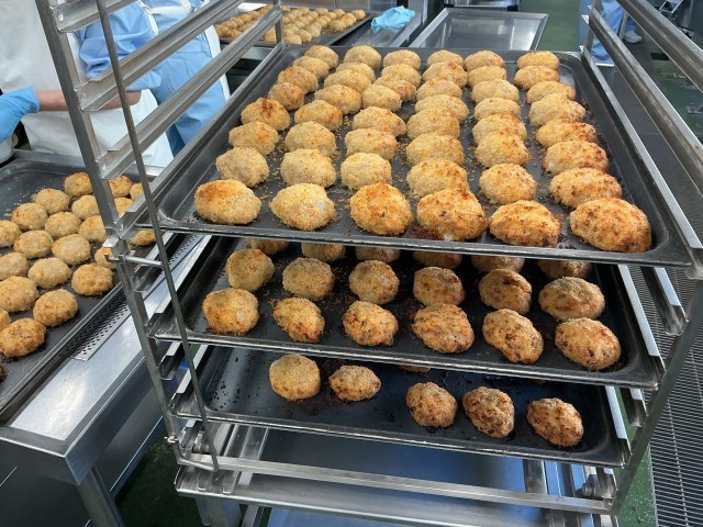 丸パン、メンチカツ、キャベツ、ミネストローネはそれぞれ6年生が家庭科の授業で考えたメニューです。