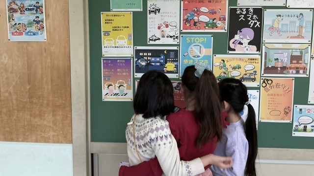 3年生は、防犯、防火のポスターを掲示しています。学び取ったことを分かりやすく表現できています。お友だちの作品を見てさらによいものをつくろうと話し合う姿も見られました。