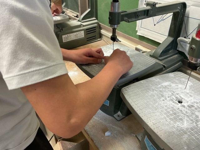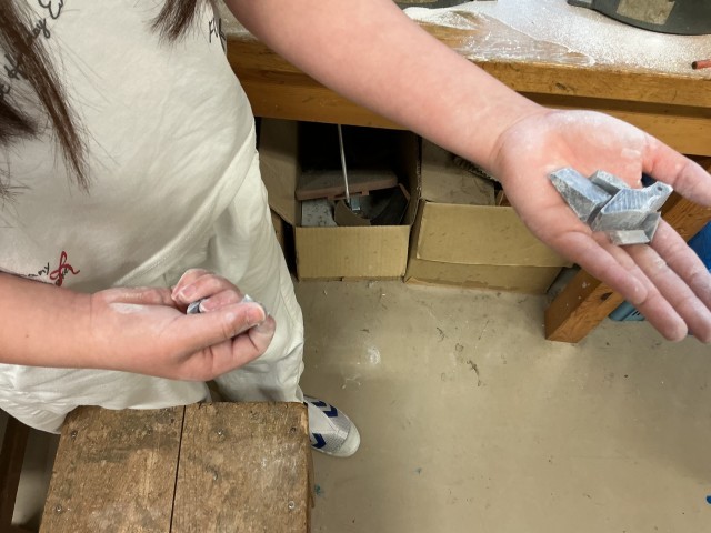 6年生は図工室で勾玉作りに取り組んでいました。電動ノコギリを使って大まかな形に切り、あとはひたすら削るのみです。残り少なくなった小学生の時間を大切に楽しく過ごしています。