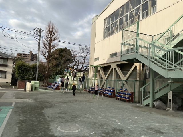 今週は円滑な朝遊びスタートに向けてのお試し期間です。ブルーシートにランドセルを置いたら元気に遊びます。いつもの朝より長く遊べるので子どもたちもうれしそうです。予想以上に子どもたちが参加してくれて、ランドセルを置くブルーシートが1枚では足りず予備のブルーシートを出しました。朝からの保護者の方のサポートに感謝いたします。ありがとうございます。