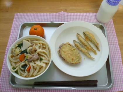 今日の献立は、煮込みうどん、天ぷら(さつまいも・わかさぎ)、